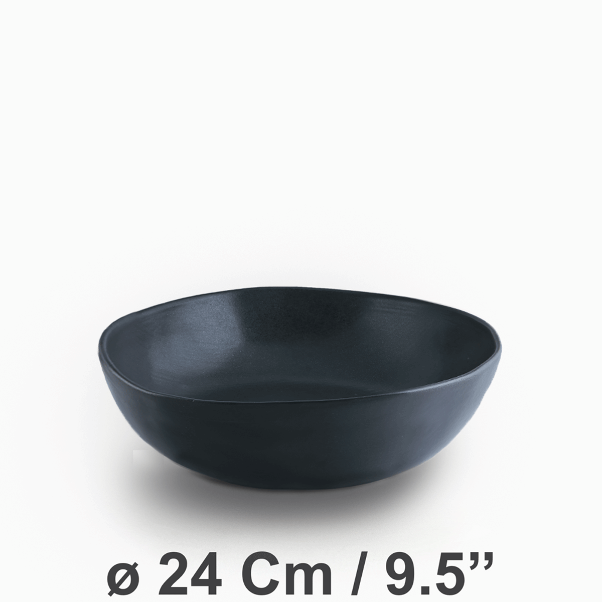 Eerie Black Pasta Bowl is the perfect canvas for your colored culinary exploration. Can be interpreted as a large deep plate. The Black mat crystallized micro reactive glaze with anthracite velvet effect will astonish your guests. Unique piece of Art on your table. This unique piece is handmade by Master Artisans, it is a piece of Art on your table.