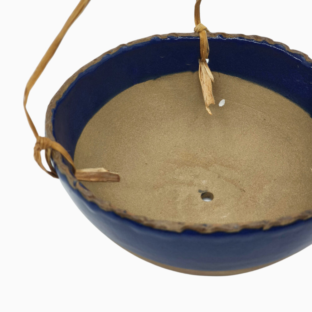 Presenting the Hanging Planter Blue Coco, a meticulously designed piece that marries aesthetics with functionality. This hanging planter is equipped with drainage and suspended with natural hemp strings, boasting a height of +/-90cm that can be customized to your needs. With its high-fired durability, handmade natural glaze, and a perfect balance between raw material and glossy finish, this planter is a stunning addition to any space. Elevate your surroundings with this elegant design piece that harmonizes beautifully in gardens, homes, or offices.
