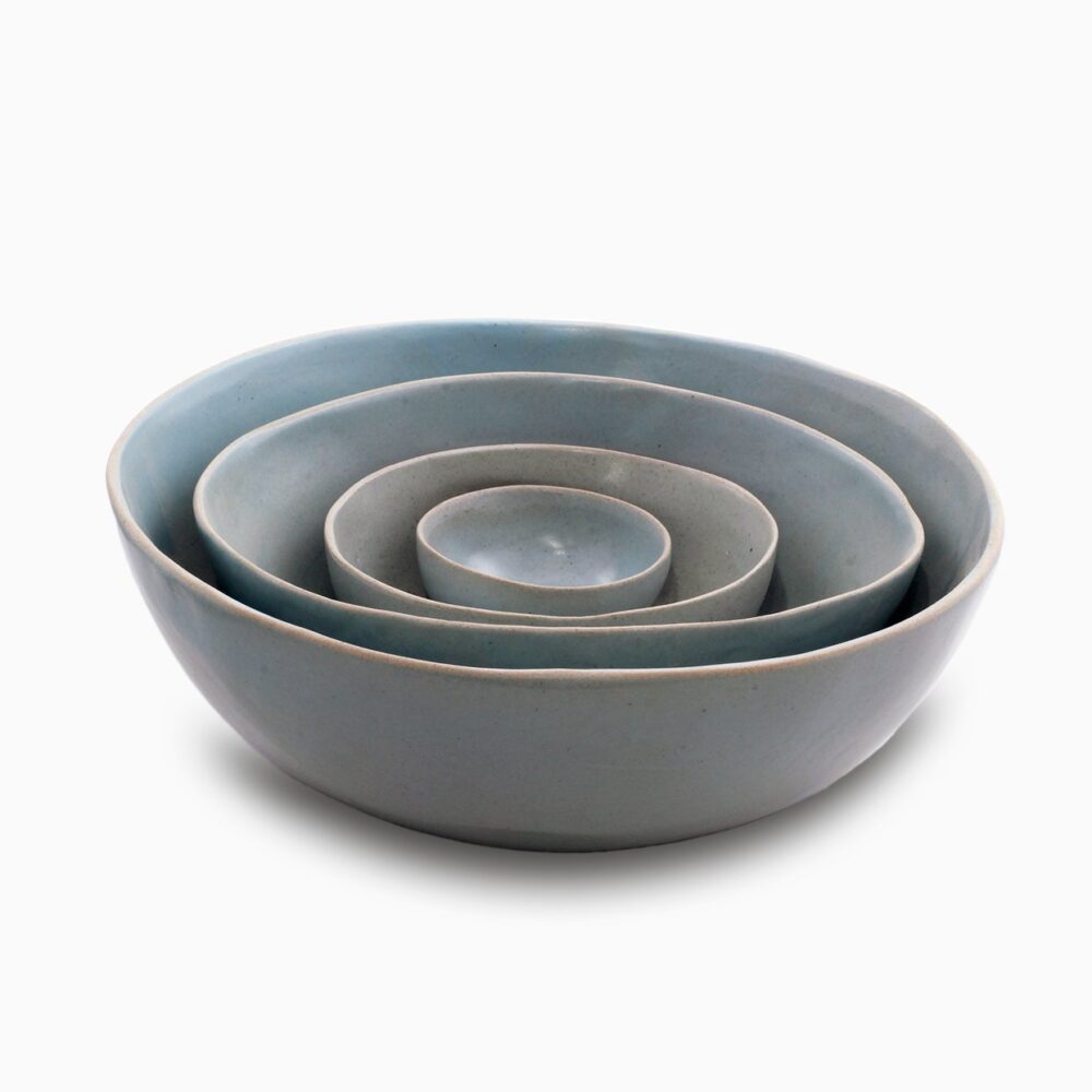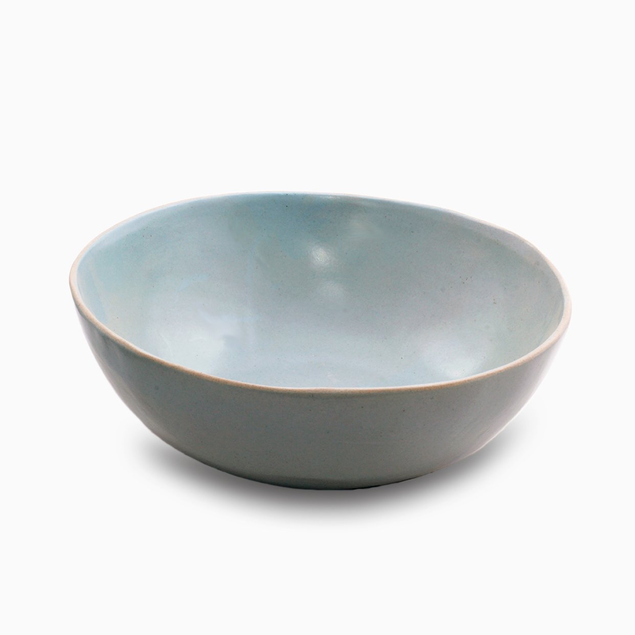 Coco Eggshell Blue Collection handmade salad and showing bowl ; Master Artisans have reach a perfectly imperfect shape. The bowl is organic, and has especially been created to get full stability on the table. This is a functional piece of Art by itself. The sweet slightly bluish glaze bring class and uniqueness to the finished item. Each piece react differently during the firing, and each piece becomes very unique.