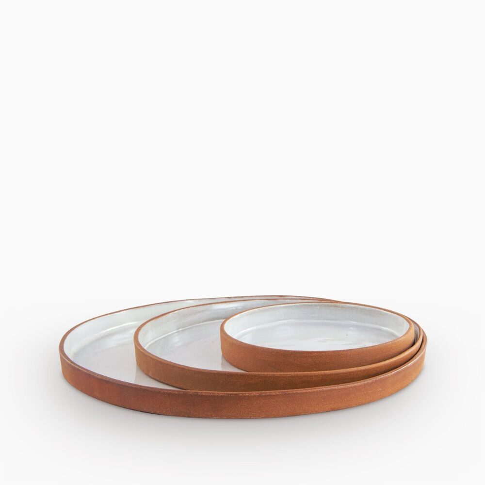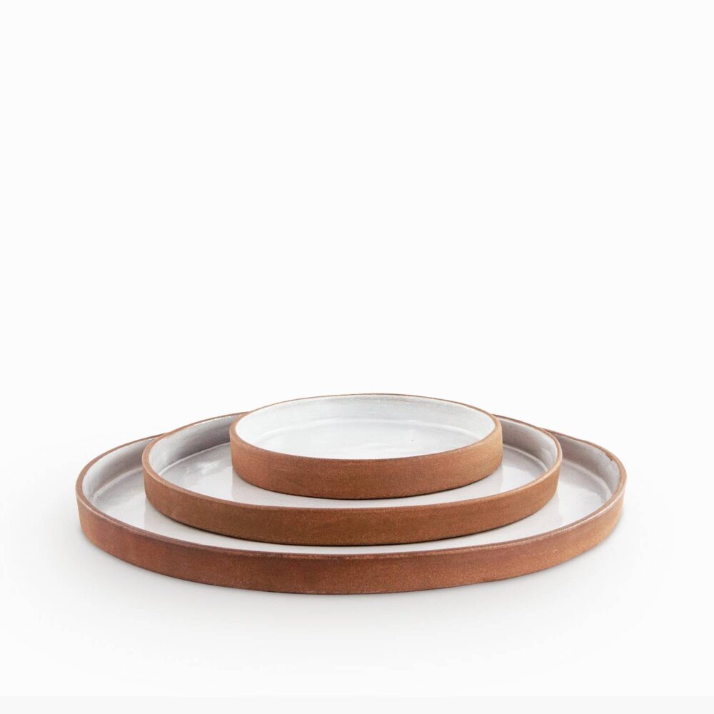 The Tonsay Velvet Side Plate combines modern design with artisanal craftsmanship. Its raised edges add a contemporary touch to its clean silhouette, while the reddish-brown matte exterior contrasts beautifully with the glossy white interior. Ideal for serving salads, desserts, or smaller portions of food during meals or gatherings, this handcrafted stoneware piece is food-safe—microwave-safe and dishwasher-friendly.